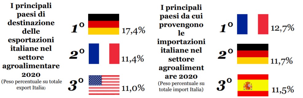 Il valore dell'export nel mercato agroalimentare è in continua crescita così come il suo peso sul totale dell'export italiano, che aumenterà dell'11% nel 2021 rispetto al valore pari a 44,6 miliardi di euro nel 2020. L'agroalimentare è infatti il comparto che ha risentito meno della crisi pandemica, non essendo stato colpito da particolari restrizioni o fermi produttivi (dati Interscambio Settoriale Agroalimentare 2021, Osservatorio Economico Ministero degli Affari Esteri e della Cooperazione Internazionale).