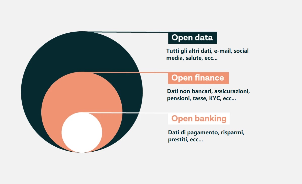 L'open finance guarda oltre l'ambito dei dati e dei servizi bancari, coinvolgendo l'impronta finanziaria a 360 gradi. Previo consenso del cliente, i dati finanziari relativi a pensioni, tasse, investimenti e assicurazioni possono diventare accessibili a una terza parte fidata e ciò può aprire la strada a servizi per i consumatori ancora più personalizzati, sia per quanto attiene ai pagamenti che per altri prodotti finanziari.
