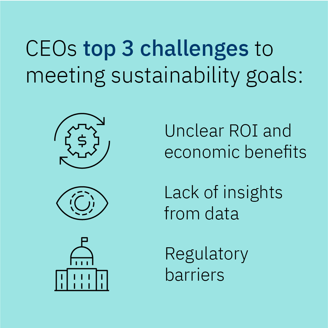 Sempre di più, i CEO vogliono essere parte attiva nella definizione della strategia di sostenibilità, e più dell'80% è convinto che maggiori investimenti in sostenibilità si tradurranno in maggiori guadagni e maggiore crescita nei prossimi anni. Tuttavia, c'è ancora poca chiarezza sui benefici economici e in termini di ROI che arriveranno con il raggiungimento degli obiettivi di sostenibilità: proprio per questa ragione, più della metà degli Amministratori Delegati (51%) cita la sostenibilità come una delle più grandi sfide per i prossimi due o tre anni (rispetto al 32% del 2021), e l'attuazione di piani strategici che abbiano infusa la sostenibilità in tutte le fasi è considerata più complessa rispetto alla regolamentazione (50%), al rischio informatico (45%), alle infrastrutture tecnologiche (41%) o alle interruzioni nelle supply chain (38%). Ci sono anche diverse barriere normative e tecnologiche, in aggiunta ad una scarsa analisi dei dati nonostante siano già disponibili in grande quantità.