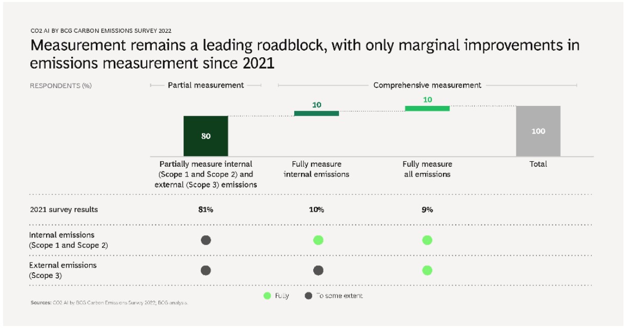 Sono alcuni dei risultati emersi dal Carbon Emission Survey Report realizzato da BCG attraverso lo strumento CO2 AI e interviste a più di 1.600 organizzazioni con un fatturato dai 100 milioni ai 10 miliardi di dollari, considerate responsabili di oltre il 40% della produzione di emissioni a livello globale. Sebbene ci siano stati dei miglioramenti rispetto allo scorso anno, la misurazione resta complessivamente debole in tutti i 14 settori presi in esame e nei 18 Paesi coinvolti nella ricerca.