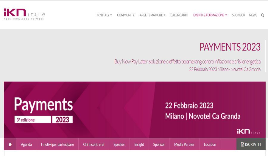 Per informazioni e approfondimenti sul programma di Payments: https://ikn.it/evento/11592/payments-2023/home