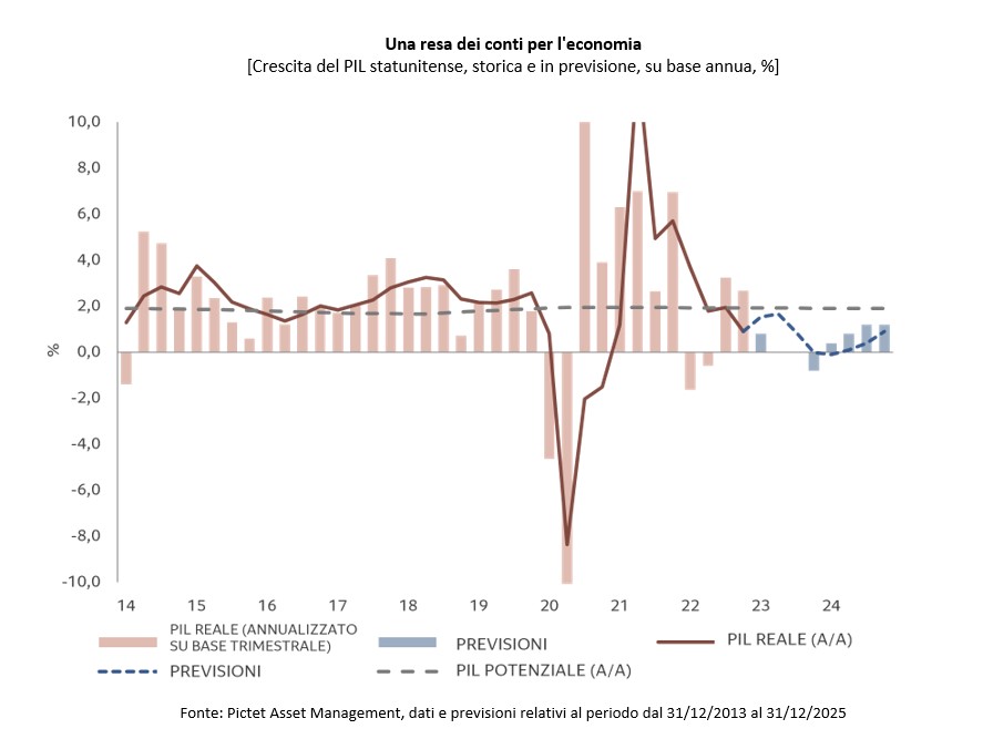 Le preoccupazioni del settore bancario potrebbero inoltre influire negativamente sul sentiment dei consumatori e delle aziende. È probabile che un'eventuale perdita di fiducia impatterà sulla spesa per i consumi e sugli investimenti delle aziende, in quanto sia le famiglie che le imprese tenderanno a conservare i risparmi accumulati durante la pandemia. Alcune banche d'investimento, come JP Morgan, hanno segnalato che le recenti turbolenze bancarie potrebbero ridurre la crescita del PIL fino a un punto percentuale nei prossimi due anni. A nostro avviso, l'economia dovrebbe rivelarsi un po' più resiliente, anche perché la Fed probabilmente risponderà alla stretta finanziaria abbassando il tasso terminale previsto per questo ciclo.