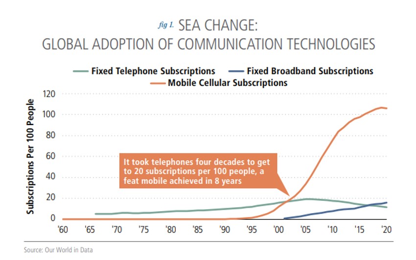Il 2012 passerà alla storia come l'anno del passaggio all'informatica mobile, destinata a rivoluzionare l'economia globale per il resto del decennio (vedi Figura). Aziende come Instagram, Uber, Spotify, TikTok e molte altre devono la loro intera esistenza alla presenza dei microcomputer nelle nostre tasche. Oggi, a differenza di dieci anni fa, la maggior parte del "computing" si svolge via smartphone ed Apple ne vende la versione più diffusa al mondo: in soli 16 anni la quota dei personal computer statunitensi prodotta dal colosso di Cupertino è passata dal 2% al 60%.