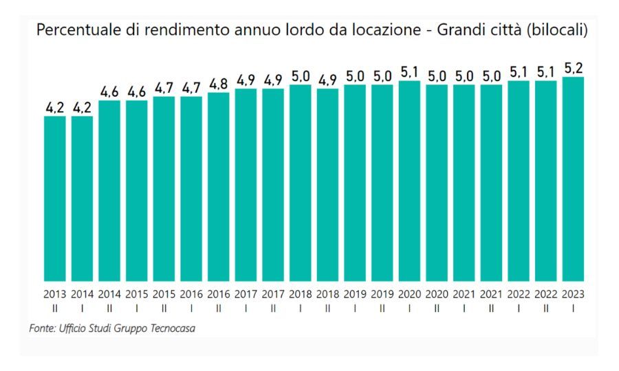 I rendimenti annuali da locazione mantengono la loro attrattiva, con un tasso del 5,2% per un bilocale di 65 mq nelle grandi città italiane. Spiccano metropoli come Genova, Palermo e Verona, che vantano rendimenti superiori alla media. Tuttavia, la prudenza guida i proprietari, considerando l'incertezza attuale e gli aumenti dei costi energetici.