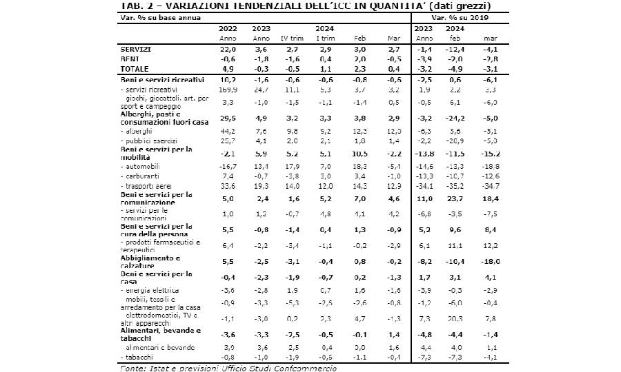 I dati di congiuntura di Confcommercio per aprile 2024 mostrano elementi incoraggianti