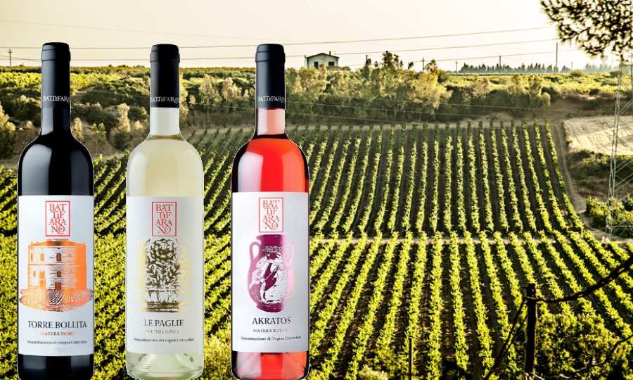 Tra le etichette più apprezzate certamente Torre Bollita, il risultato di un blend di uve Cabernet Sauvignon, Primitivo e Merlot, che racconta la forza di quelle guarnigioni aragonesi per le quali, nel Cinquecento, fu eretta, a difesa delle popolazioni sul Mar Jonio, la Torre Bollita, oggi nella tenuta della famiglia Battifarano.