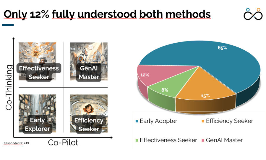 - Gli Efficiency Seeker (15%): utilizzano la GenAI per automatizzare compiti ripetitivi, mirando principalmente a risparmiare tempo e aumentare la produttività;