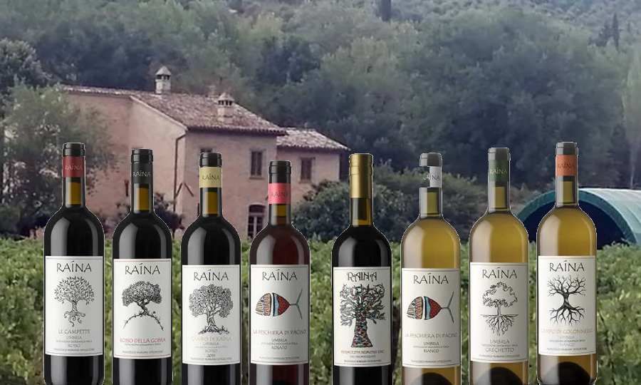 La cantina Raína nasce nel 2002. I vigneti, 10 ettari impiantati tra il 2002 e il 2008, sono posti ad una quota compresa tra 220 e 300 metri sul livello del mare. Il suolo che li compone è di medio impasto, ricco di scheletro. L'esposizione è principalmente a sud-est. "Nelle nostre vigne coltiviamo Sagrantino, Sangiovese, Montepulciano, Merlot, Syrah, Grechetto e Trebbiano Spoletino. Nel 2022 abbiamo deciso di uscire dal circuito delle DOC per cui tutti i nostri vini sono volutamente certificati come IGT Umbria", ricorda Mariani.