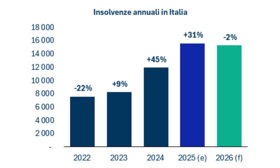 - +2,8%: aumento previsto delle insolvenze a livello mondiale nel 2026.