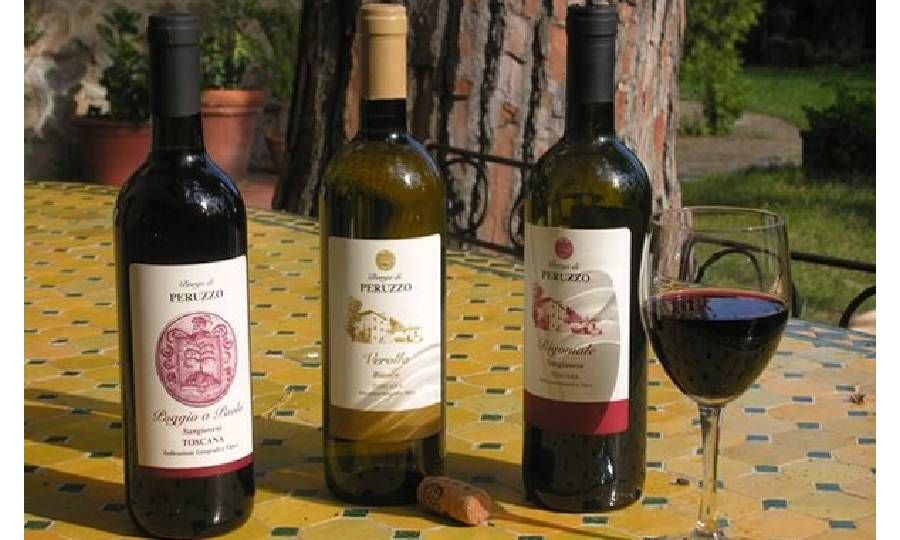 "Una piccola parte delle uve raccolte a Peruzzo viene utilizzata per la vinificazione dei nostri vini presso una cantina vicina che si occupa anche dell'imbottigliamento in bottiglie da 0,750 litri ciascuna - spiega Elisa. Con essi produciamo due rossi e un bianco, vini buoni e genuini che si accompagnano bene a diversi piatti della cucina toscana e prendono il nome dai torrenti che attraversano l'azienda. Abbiamo optato per una vinificazione tramite fermentazioni spontanee, senza lieviti selezionati né aggiunta di prodotti chimici, per consentire ai vini di esprimere al meglio il nostro terroir".