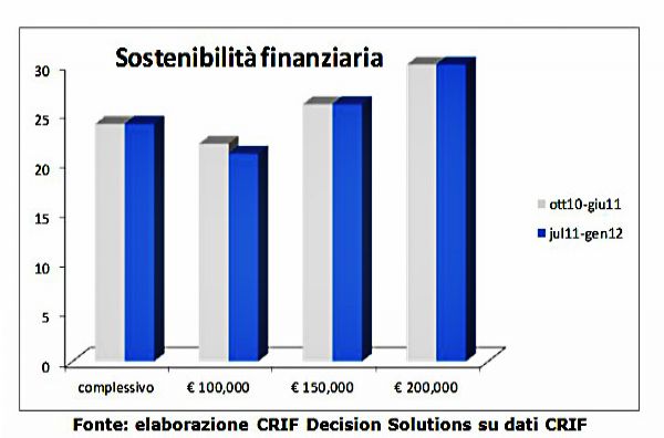 “Questa situazione ha avuto un forte impatto sulle imprese italiane, che prevalentemente sono di piccole e medie dimensioni, che hanno dovuto bruciare ingenti risorse a causa dei maggiori oneri finanziari e si sono trovate obbligate a contrarre gli investimenti, penalizzando soprattutto quelle realtà meno in grado di sostenere la concorrenza internazionale” – commenta Silvia Ghielmetti, Direttore di CRIF Decision Solutions.Per quanto riguarda le famiglie, invece, è emerso il maggior costo del debito sostenuto per finanziare l’acquisto di abitazioni: sui nuovi mutui, infatti, le rate sono salite di circa il 4% nel periodo di accelerazione dello spread, tanto che per un finanziamento ventennale da 100.000 euro si possono quantificare maggiori oneri per un valore pari a circa 290 euro su base annua. L’incidenza di questi maggiori oneri sui mutui residenziali è però rimasta sostanzialmente costante nel periodo in cui si è manifestata la repentina crescita dello spread (ovvero da luglio 2011 a gennaio 2012), data la forte contrazione dei volumi erogati rilevata nel medesimo arco temporale sia a causa di un vero e proprio crollo della domanda da parte delle famiglie sia di politiche più prudenti adottate dagli Istituti di credito, alle prese con le difficoltà nel funding, requisiti di capitale più stringenti e la rischiosità dei propri portafogli di clientela.
