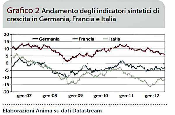 Non si è ancora, quindi, vicini alla normalità e con il mese di febbraio il vento in Borsa è in parte cambiato. A subire una battuta d’arresto, dopo il rally del mese di gennaio, per effetto del riemergere di certi timori – primo fra tutti, l’incertezza politica in Italia – sono stati soprattutto i listini europei; al contempo lo spread Btp-Bund è tornato leggermente a salire, fino in zona 300 punti base.Tornando al tema della crescita, nel 2013 ci attendiamo una revisione al rialzo e a conferma i primi segnali promettenti arrivano da indicatori anticipatori in Italia, Germania e Francia; in particolare, si nota un certo miglioramento dell’indice PMI italiano.