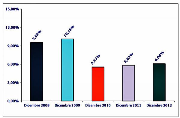 Entrando nel dettaglio dell’analisi aggiornata al 31 dicembre 2012, negli ultimi 5 anni la percentuale dei migliori partner commerciali B2B è passata dal 9,53% del totale 2008 al 6,08% di fine 2012, con un calo di 3,45 punti percentuali. Dal 2010 però si è registrato un piccolo ma continuo miglioramento che ha portato la quota complessiva al 6,08%.Il livello più alto delle imprese più affidabili commercialmente si è registrata nel 2009 (quando rappresentavano il 10,15% del totale) mentre quello più basso è stato toccato l’anno successivo, quando la quota è scesa al 5,53%.